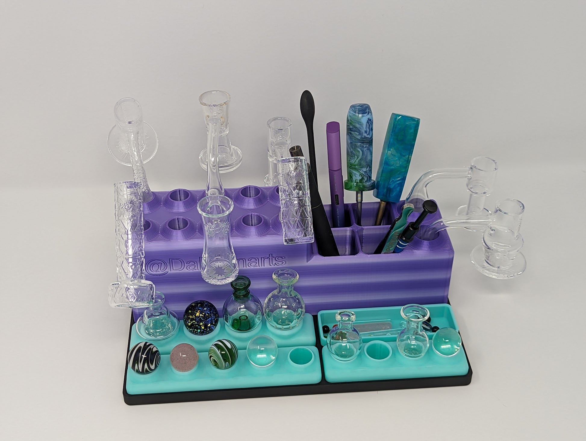 Kaytlynn C I’ve needed to organize my dabbing/smoking area for the last year or so. After doing a lot of research, I looked into dabsmarts because they have the most options, color wise and style wise from what I’ve seen. But this piece has everything I needed in one and I love the rainbow color on it as welll!!!! I messaged and asked if that color was available, they were so helpful and quick to respond! This is not the only piece I purchased as well and will be getting more!!! The also the quality is outstanding!